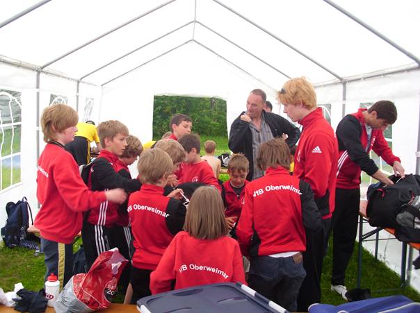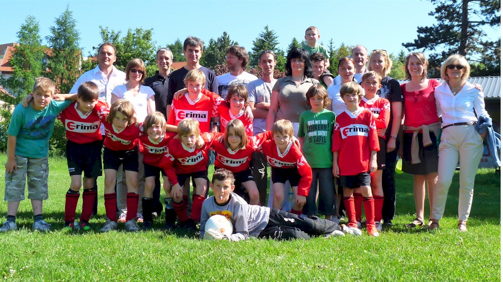 Fazit der Saison 2009/10: Wir haben besonders in den ersten Spielen überzeugt (das 6:6 gegen den SC 03 zum Beispiel) und dann kurz vor der Winterpause einen kleinen Formeinbruch gehabt. Die Rückrunde war bis auf ein oder zwei kleinere Ausnahmen sehr gut. Trotz einer sehr guten Personalsituation und Trainingsbeteiligung fehlten uns aber dann doch in den wichtigen Spielen z.B. gegen N’zimmern die Alternativen. Insbesondere auf unserem Rasenplatz hatten wir schwache Spiele (z.B. gg. Kranichfeld). Insgesamt waren unsere Ziele zum Saisonbeginn doch etwas zu hoch angesiedelt. In den wichtigen Bereichen des Fußballs im Kindesalter haben sich unsere Jungs ausnahmslos verbessert, haben also alle Grundtechniken vermittelt bekommen. Was nach wie vor fehlt, ist die körperliche Robustheit. Tatsache ist aber: Wir spielten mit einem gemischten Jahrgang (sieben 99’ und sechs 00’), von denen lediglich zwei länger als drei Jahre im Verein sind. Die meisten haben erst vor drei Jahren mit dem Fußballspielen begonnen. In dieser Zusammensetzung spielten wir zuvor noch nie (In der F – Jugend spielten einige ihre ersten Punktspiele). Ich denke deshalb, dass wir insgesamt mit der Entwicklung der Mannschaft in dieser Saison und unter Berücksichtigung der uns zur Verfügung stehenden Mittel sehr zufrieden sein können.
