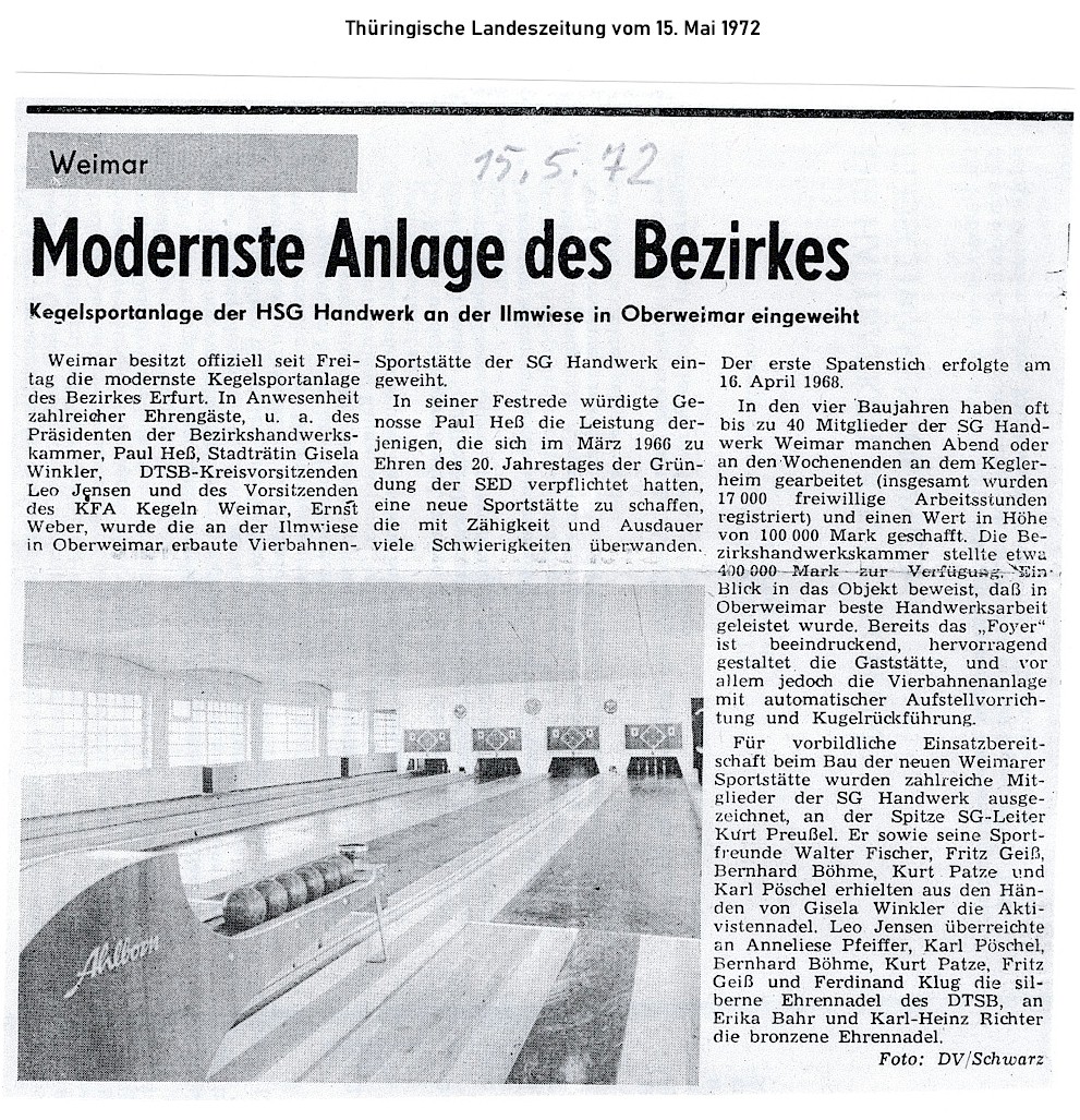 Unsere Pressearchiv: Modernste Anlage des Bezirkes (Thüringische Landeszeitung 15.05.1972)