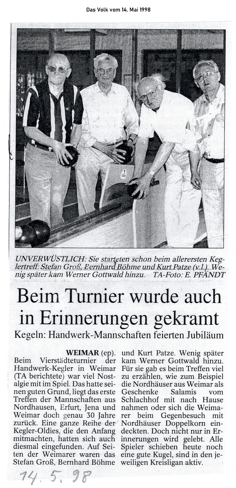 Unsere Pressearchiv: Beim Turnier wurde auch in Erinnerungen gekramt (Das Volk 14.05.1998)