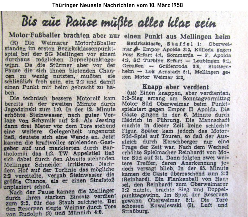 Unsere Pressearchiv: Knapp aber verdient (Thüringer Neueste Nachrichten 10.03.1958)