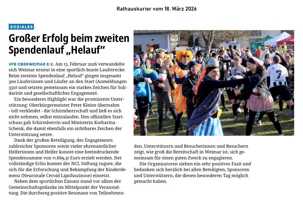 Unsere Pressearchiv: Großer Erfolg beim zweiten Spendenlauf (Rathauskurier Weimar 18.03.2026)