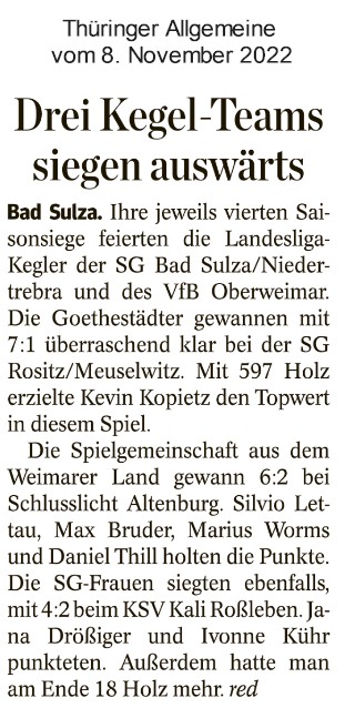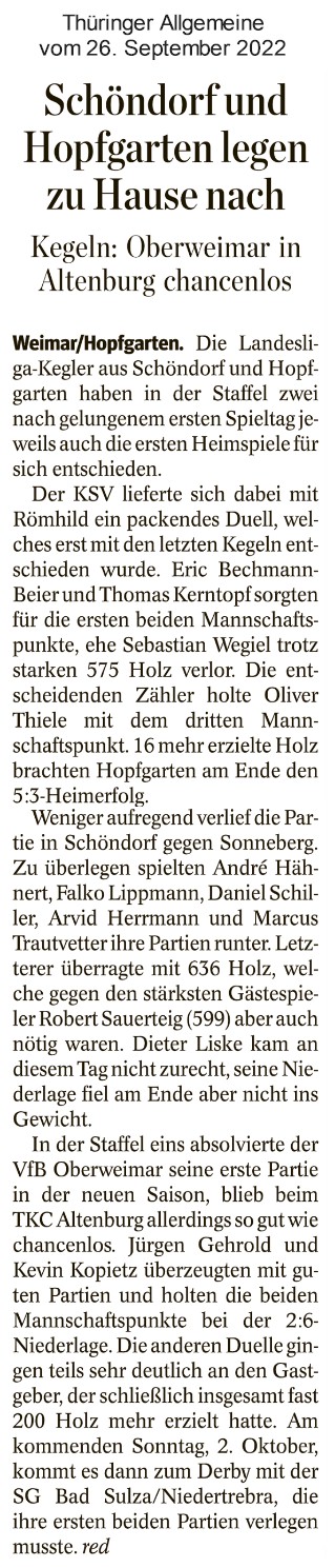 Wettkämpfe unserer Kegler03.08.2022 Der Thüringer Kegler-Verband hat die Ansetzungen für