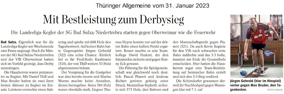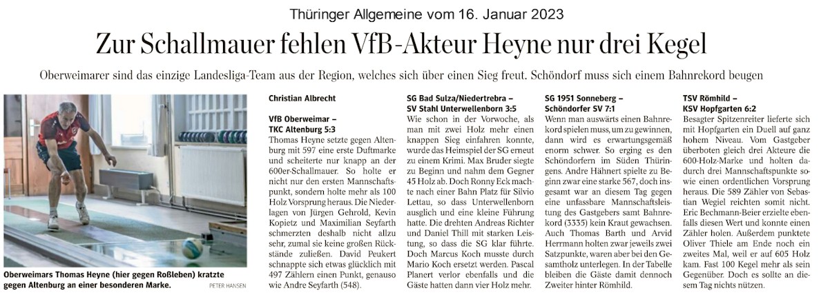 Heimsieg im ersten Wettkampf des Jahres17.01.2023 Unsere Landesliga-Mannschaft hat den ersten Kegel-Wettkampf des